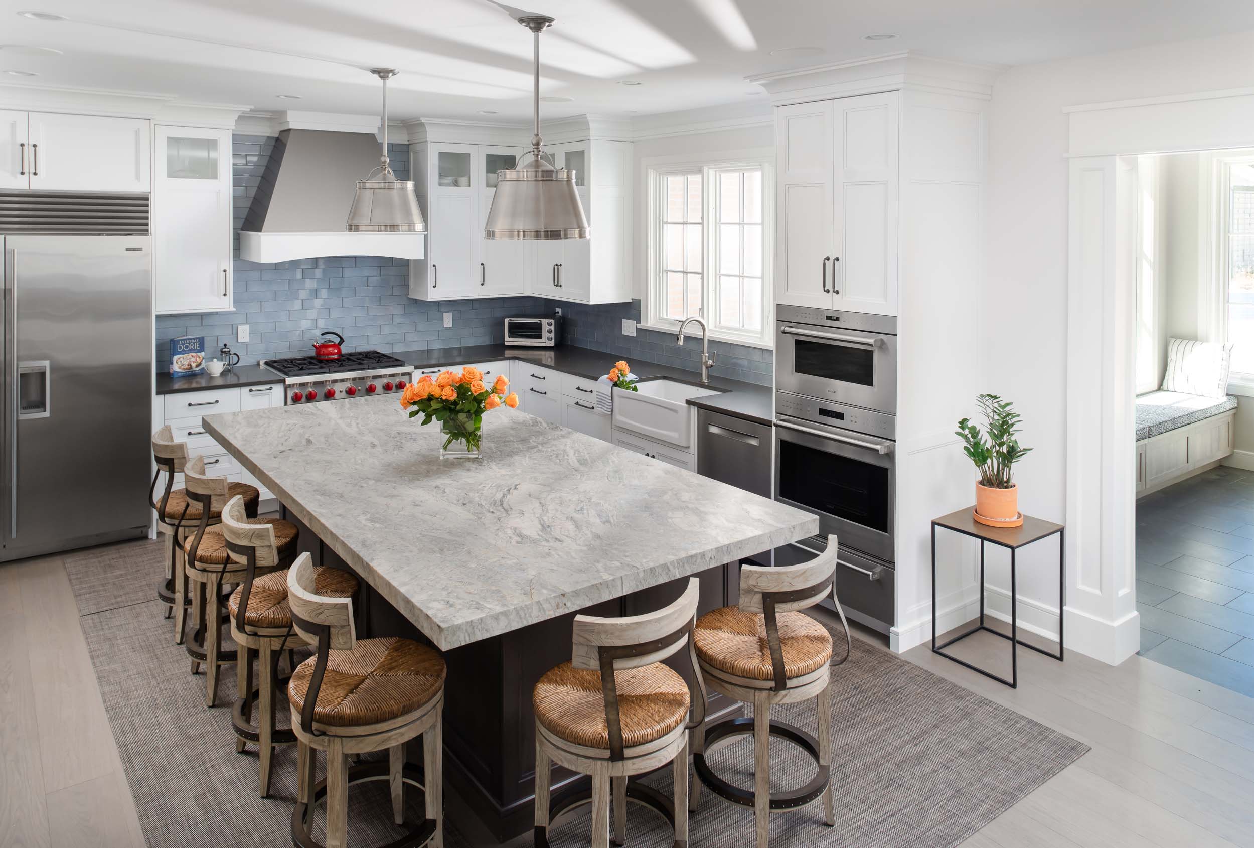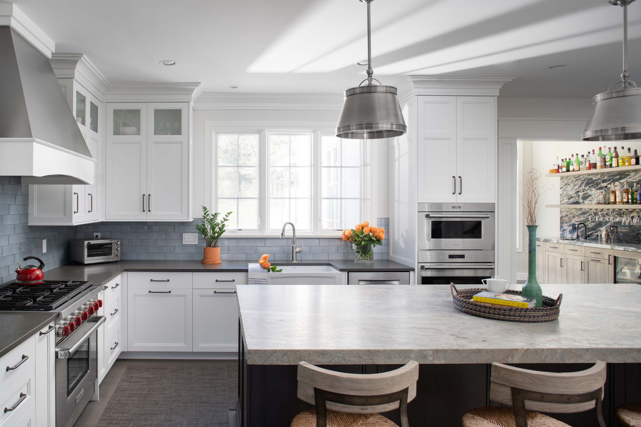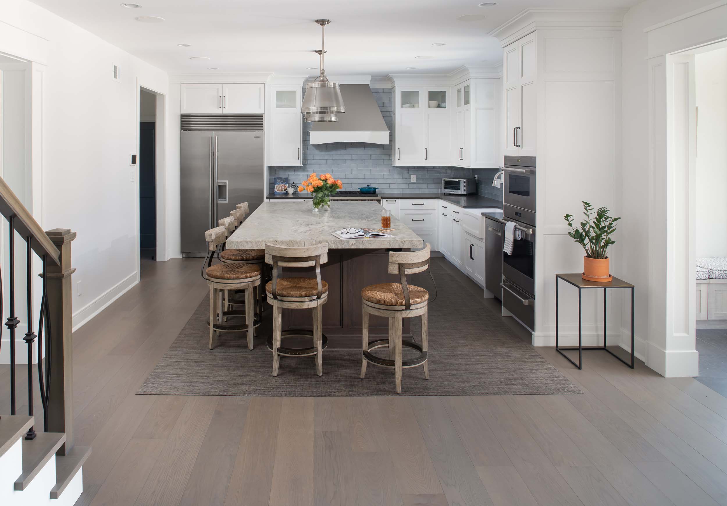 This 1990s home was transformed for the current owners who love to entertain. Renovations began with the exterior and then moved inside where an entire house renovation was completed. The kitchen and bar area are the focal point of the interior, extending out to the living room, dining room, music room, and front foyer, while the outdoor living space is an oasis all its own! This home is a great example of what can be done to redesign and renovate an existing home, resulting in beautiful design and build, high functionality and flow, and happy clients!