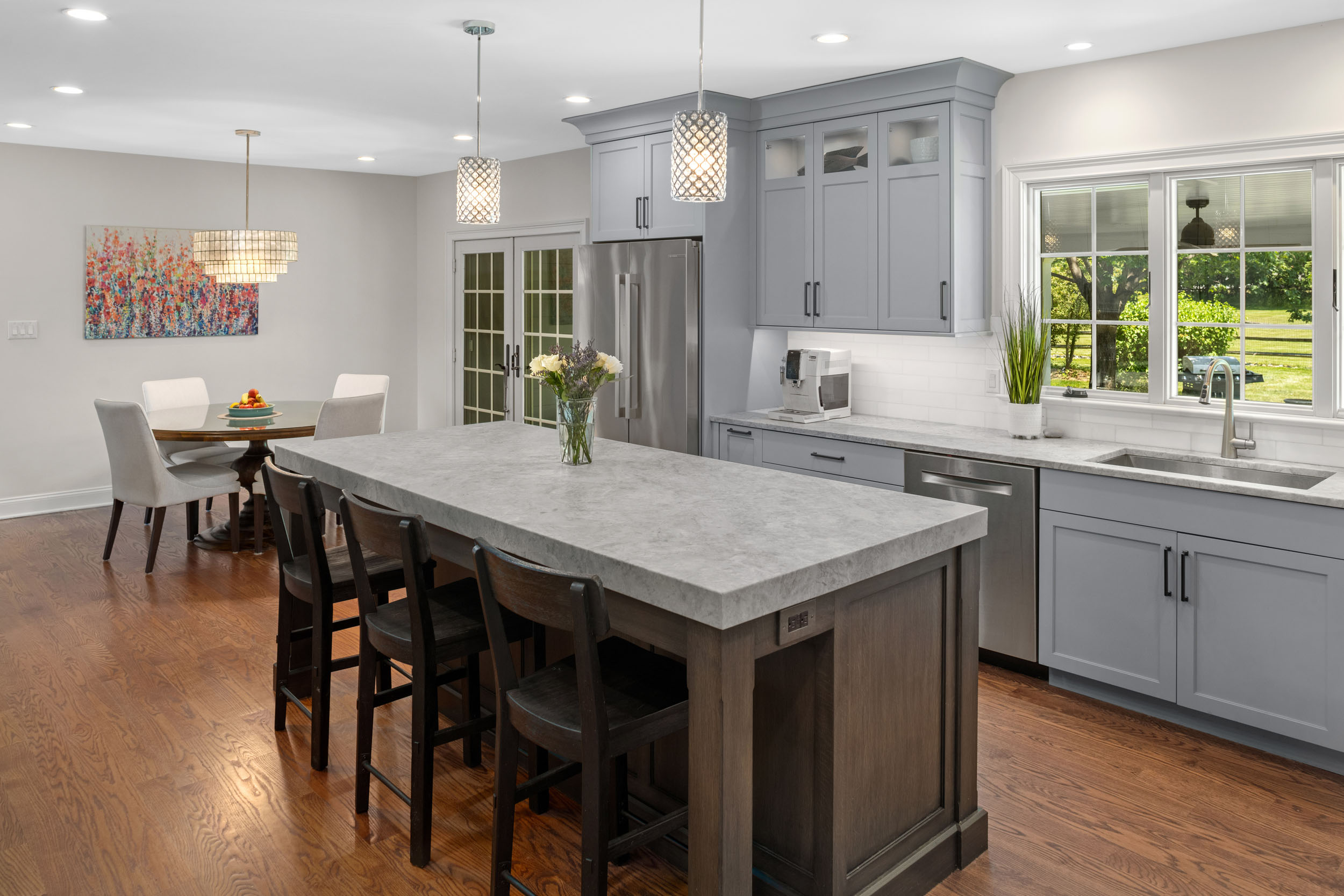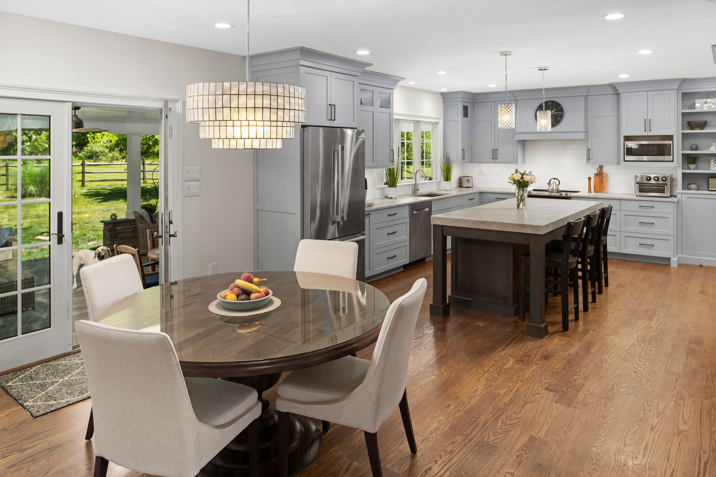 This was a three-part renovation! Check out the adjoining mudroom and dog bath and the outdoor patio just off the kitchen.